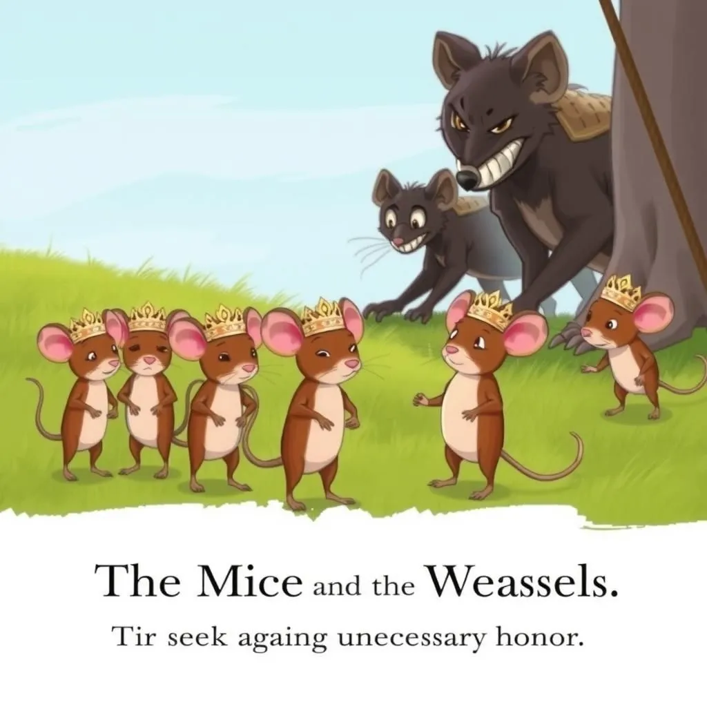 في "الفئران والعرسان"، وهي قصة كلاسيكية بين القصص الأخلاقية المؤثرة، تعين الفئران قادة متميزين لتحسين فرصهم في حرب طويلة الأمد ضد العرسان المنتصرين. ومع ذلك، فإن غطاء رأسهم الواضح يؤدي إلى أسرهم وموتهم، بينما تهرب بقية الفئران، مما يوضح الدرس الأخلاقي الفريد بأن السعي وراء الشرف يمكن أن يؤدي إلى مخاطر أكبر. هذه القصة المحفزة للتفكير تذكرنا بمخاطر الكبرياء وعواقب القرارات السيئة في قصص الحياة الواقعية ذات الدروس الأخلاقية.