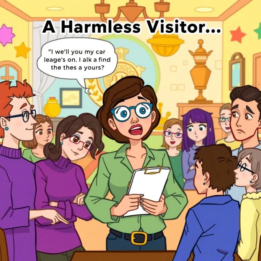 في اجتماع عصبة الغموض الذهبية، تم اكتشاف امرأة تدون الملاحظات وتم استجوابها عن وجودها. ادعت في البداية أنها كانت هناك من أجل متعتها الشخصية وتثقيفها، لكنها كشفت أنها كانت ضابطة في جمعية الصحافة النسائية، مما أدى إلى قبولها واعتذار المنظمة. تعكس هذه القصة الأخلاقية المسلية أهمية الصدق وقيمة المعرفة، مما يجعلها قصة مناسبة للقراء الصغار الذين يبحثون عن الدروس الأخلاقية.