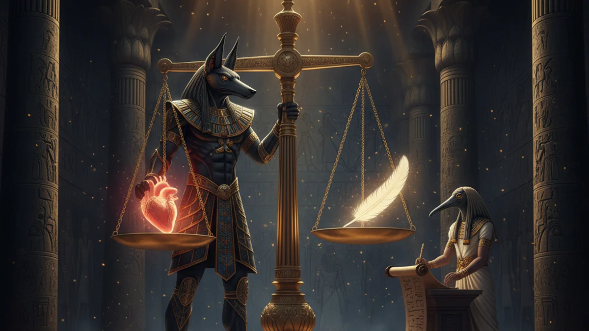 Anubis and the Scales tells the ancient Egyptian journey of the soul through the Hall of Truth, where the heart is weighed against the feather of Ma’at.