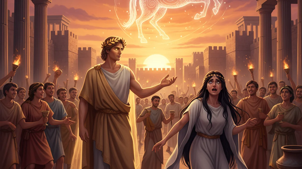 Apollo, the god of light and prophecy, was captivated by the beauty of Cassandra, the princess of Troy. To win her heart, he promised her the divine gift of seeing the future. Cassandra accepted the gift, but once the power was hers, she rejected the god’s romantic advances. Infuriated, Apollo could not revoke a gift once given, so he twisted it into a curse. He breathed into her mouth, decreeing that while she would always speak the truth, no one would ever believe her. Cassandra spent the rest of her life in agony, foreseeing the bloody fall of Troy and the trickery of the Trojan Horse. She screamed warnings to her people, but they dismissed her as a madwoman. Her truth-telling became her prison, and she watched helplessly as every one of her horrifying visions came to pass, leading to the destruction of her city and family.