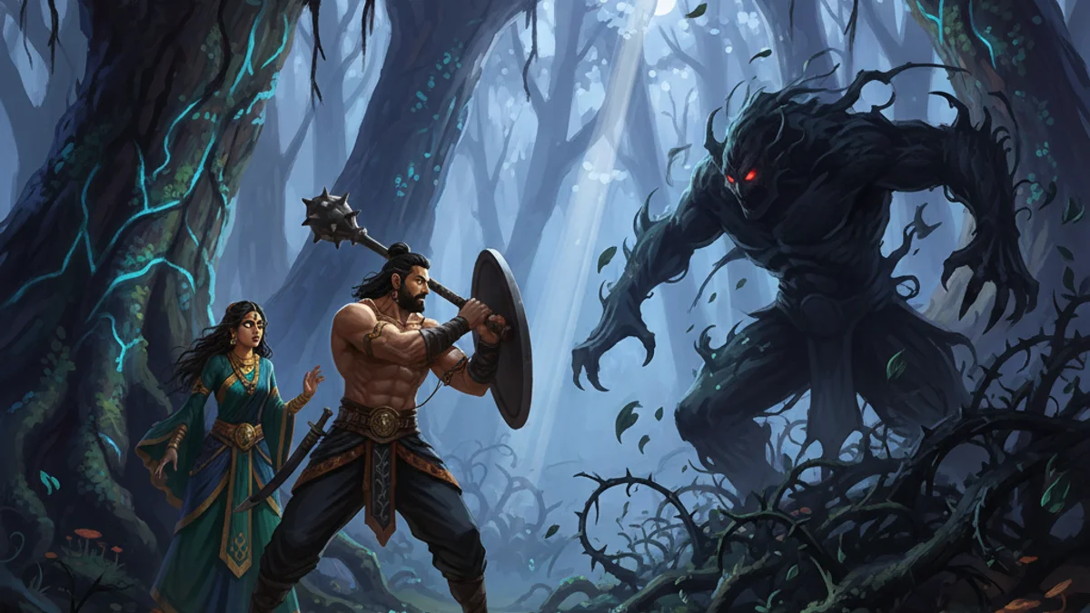 Discover the epic tale of Bhima and Hidimba from the Mahabharata. A story of a forest battle, a demon's defeat, and the birth of the legendary Ghatotkacha.