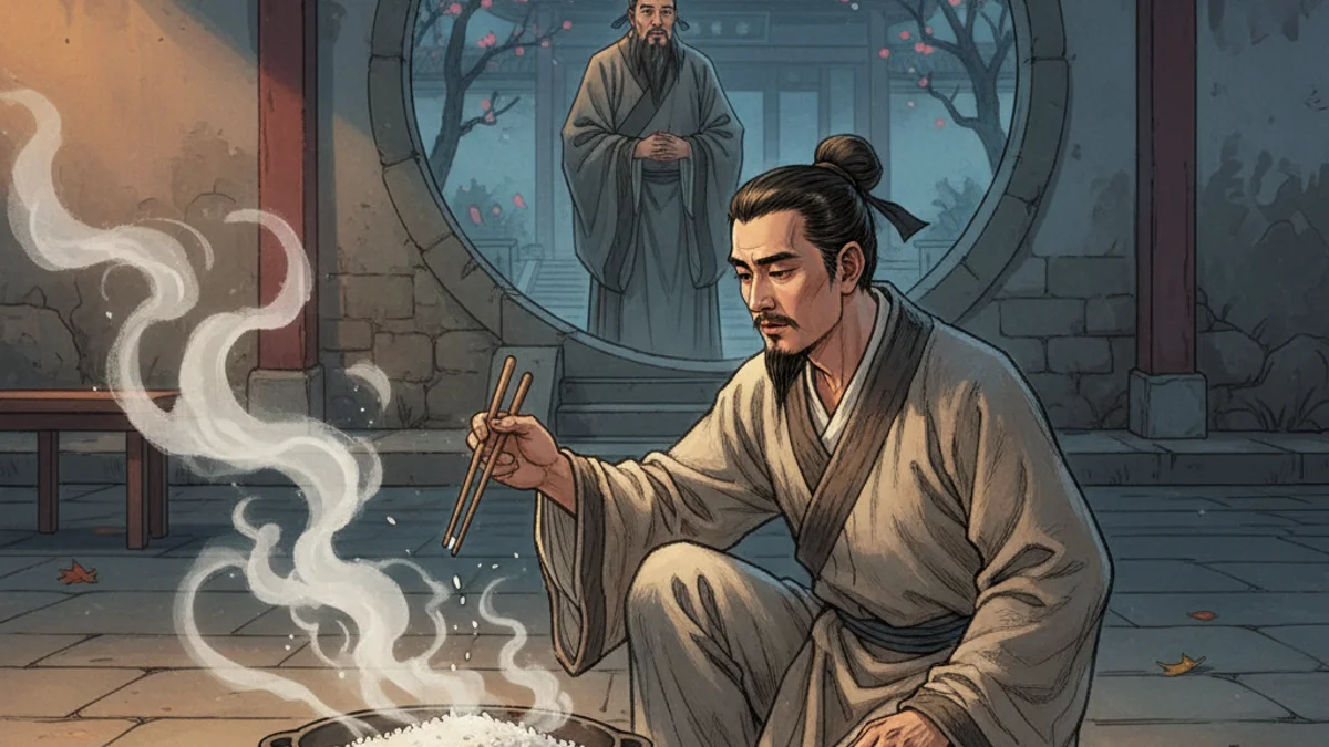 Confucius saw Yan Hui eating from the pot before the meal was officially served. In ancient Chinese culture, eating before elders or before offering food to ancestors was considered a significant sign of disrespect and greed.
