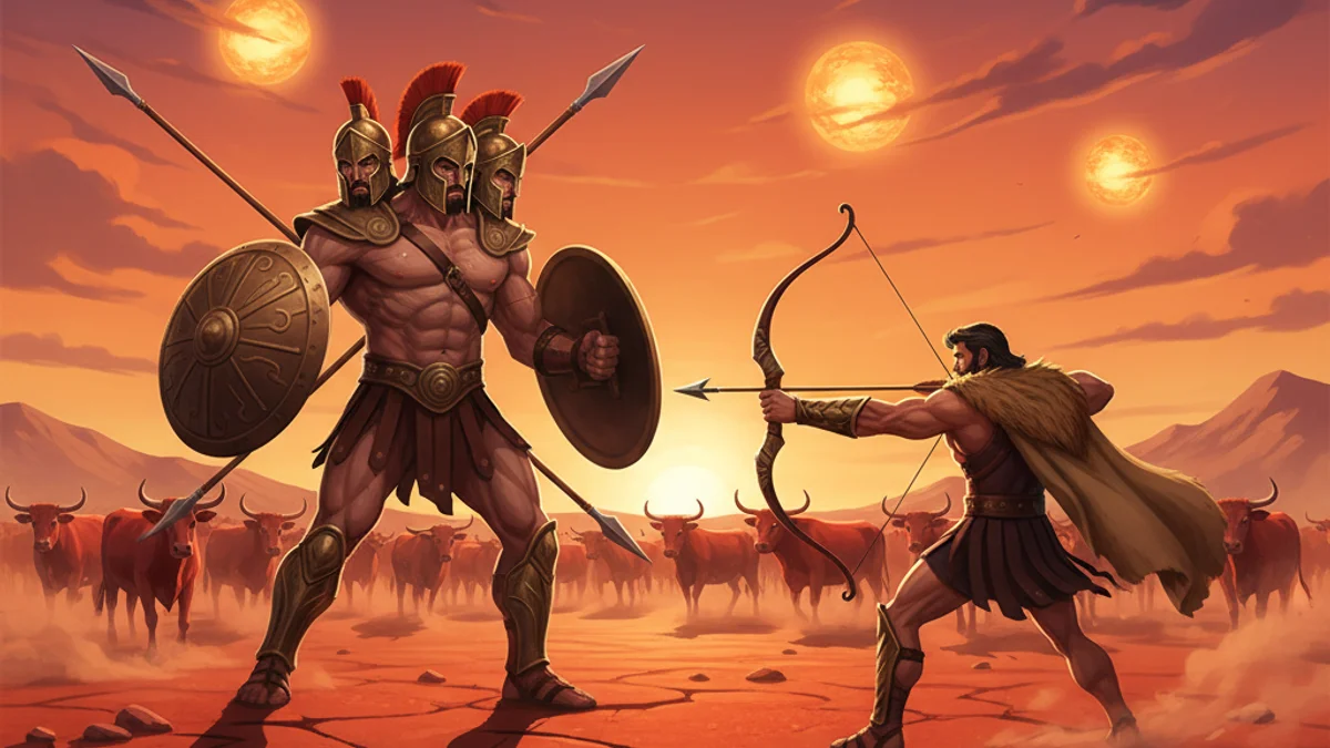 Discover the legend of Geryon the Three-Bodied Giant. Heracles must confront this monstrous guardian and his red cattle in an epic tenth labor of Greek mythology.