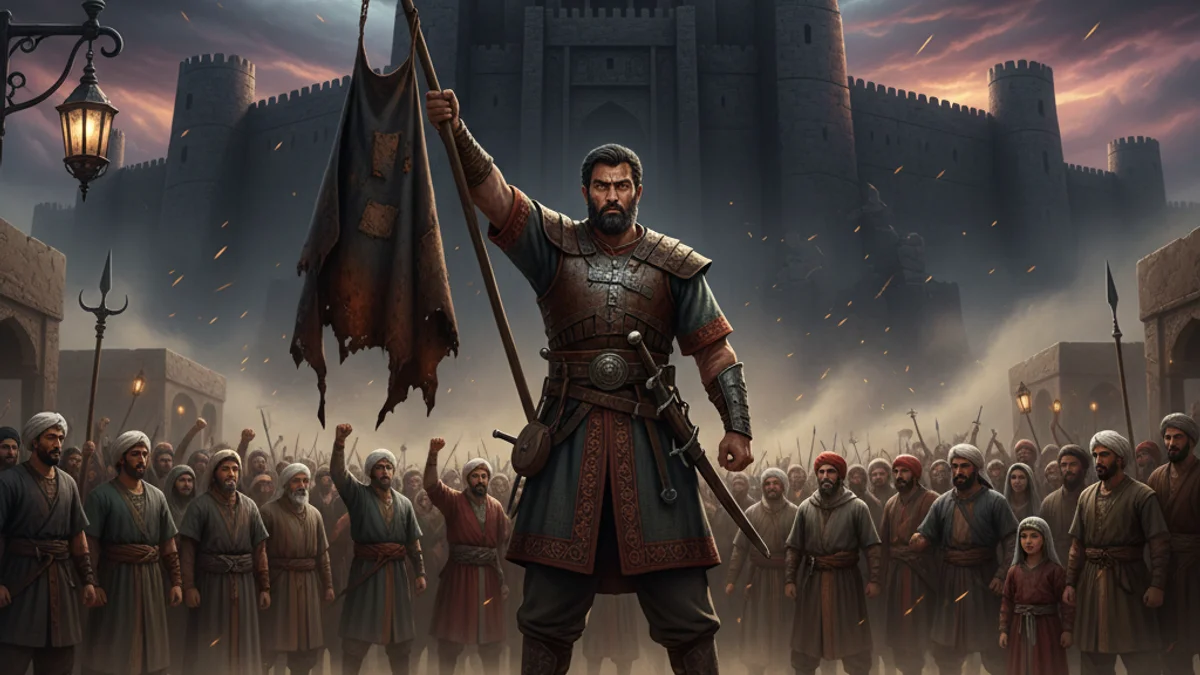 The land of Persia groaned under the rule of King Zahhak, a tyrant cursed with two serpents growing from his shoulders. To appease the hunger of these snakes, Zahhak demanded the brains of two young men every day. When Kaveh, a humble blacksmith, lost seventeen of his eighteen sons to this cruelty, his grief turned to iron-willed defiance. Summoned to the palace to sign a document testifying to Zahhak's 'justice,' Kaveh instead tore the paper apart in fury. He marched out, fixed his heavy leather blacksmith’s apron to a spear, and raised it as a banner—the Derafsh Kaviani. This simple tool became a symbol of resistance, rallying the oppressed masses. Kaveh led the people to find Fereydun, the rightful heir to the throne. Together, the blacksmith and the prince led a revolution that overthrew the tyrant, binding Zahhak in chains within Mount Damavand and restoring light to the realm.