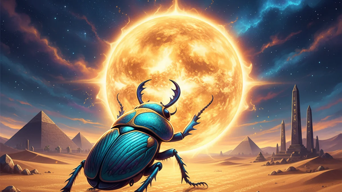 Discover the myth of Khepri and the Scarab, where the sun god rolls the golden orb across the sky to bring light and rebirth to the ancient world of Egypt.