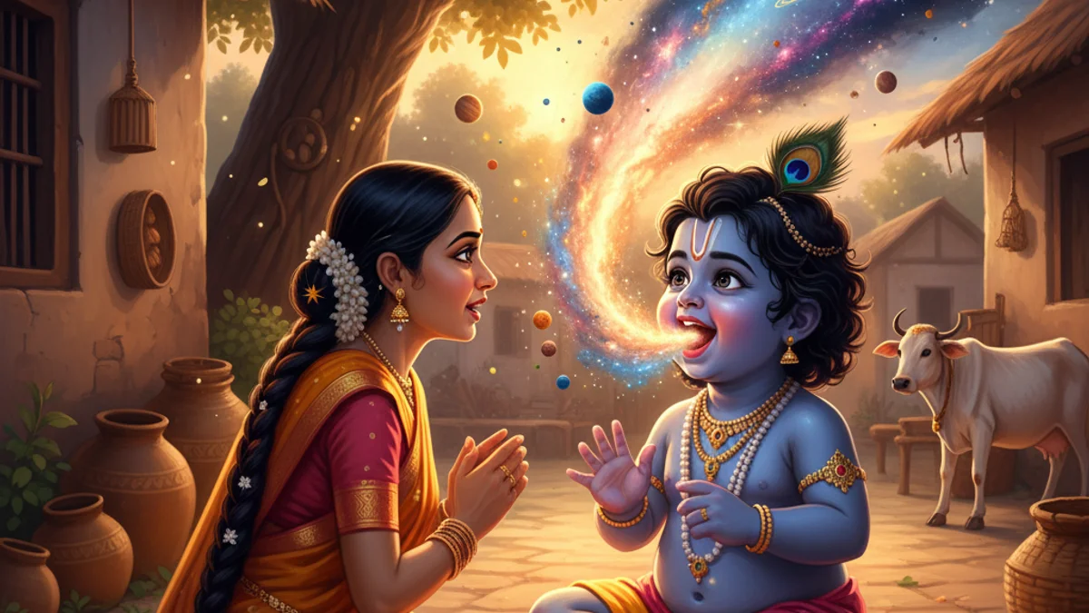 Discover how Lord Krishna shows the universe in his mouth to Mother Yashoda in this classic Hindu myth, revealing his divine nature through a simple childhood act.