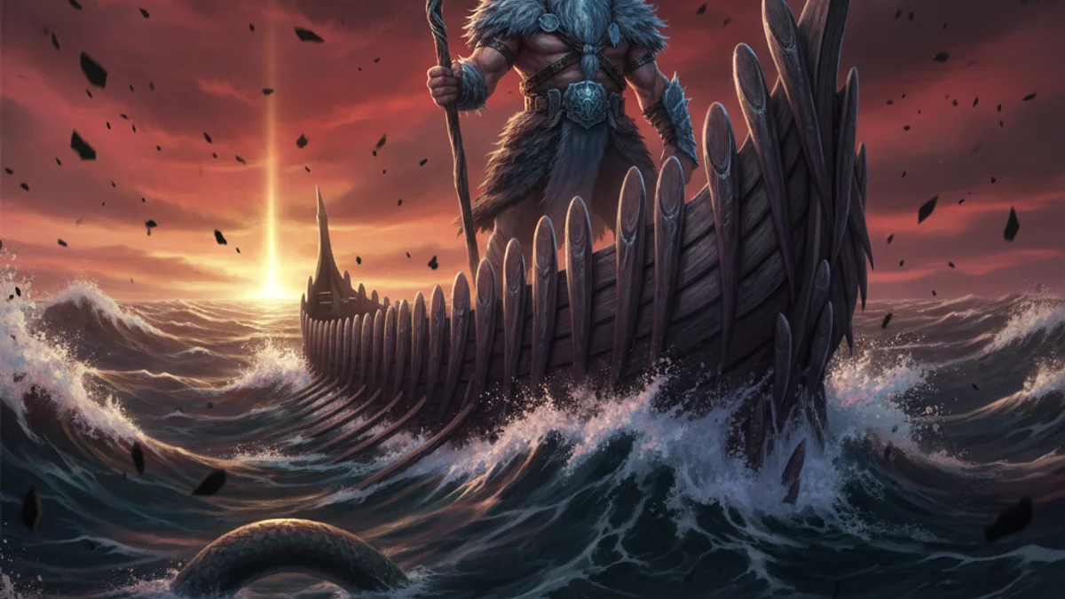 In the Norse myth Naglfar Sets Sail, a ship made of the dead's nails carries giants to the final battle of Ragnarok, signaling the end of the world's cycle.