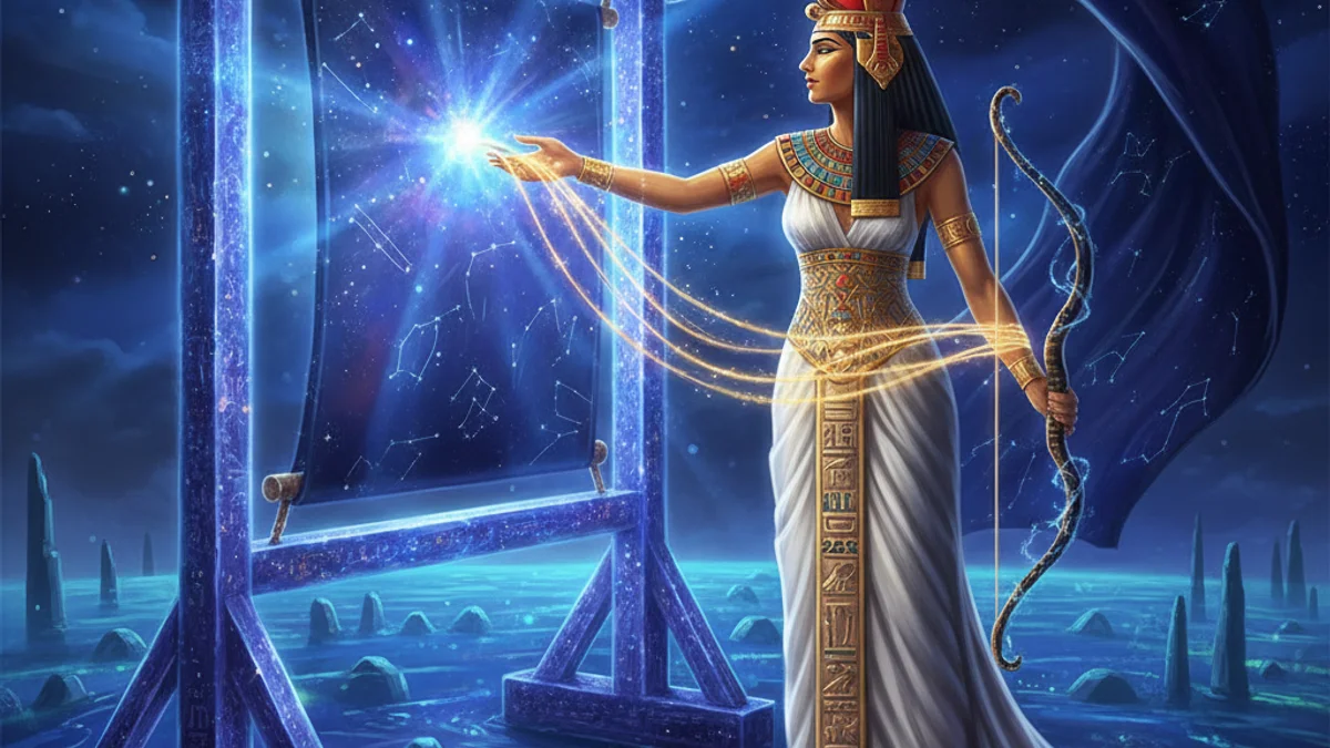 Discover the legend of Neith the Weaver, the primordial Egyptian goddess who wove the cosmos on her loom and gave birth to the sun in this ancient creation myth.