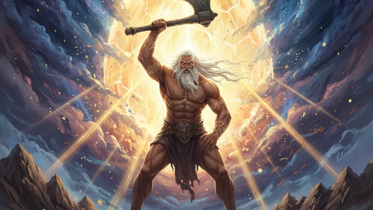 In many versions of the myth, Pangu uses a massive axe to crack the cosmic egg. Once the elements began to separate, he used his own body as a pillar to keep them from merging back together.