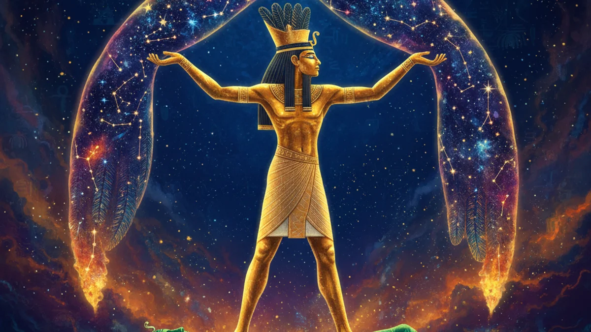 Discover the myth of Shu Holds Up the Sky, where the Egyptian god of air separates the earth and heavens to create the breath of life and cosmic balance.