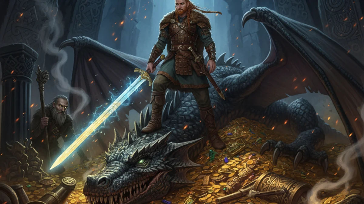 Experience the epic Norse legend of Sigurd and Regin. Witness the forging of the sword Gram, the slaying of Fafnir, and a tale of greed, magic, and betrayal.