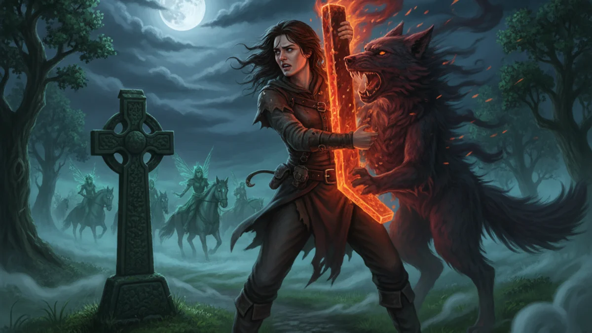 Young Janet was warned never to enter the forbidden woods of Carterhaugh, for the knight Tam Lin collected a toll from any maiden who passed. Defiant and curious, Janet went and plucked a double rose, summoning the mysterious guardian. To her surprise, she found not a monster but a mortal knight who revealed he had been captured by the Queen of Fairies years ago. Tam Lin confessed a dark secret: every seven years, the fairies paid a teind, or tithe, to Hell, and he feared he was to be the next sacrifice on Halloween. He told Janet that she alone could save him. She must wait at Miles Cross on all-hallows eve and pull him from his white horse as the fairy cavalcade passed. He warned her that the Queen would transform him into many terrifying forms—an adder, a lion, and even red-hot iron—to force her to let go. That night, Janet stood her ground. She seized Tam Lin and held him tightly through every agonizing change. When he finally turned into a naked knight, she wrapped him in her green mantle, shielding him from the supernatural realm. The Queen of Fairies shrieked in fury at losing her favorite thrall, but Janet’s unwavering courage had broken the spell forever.