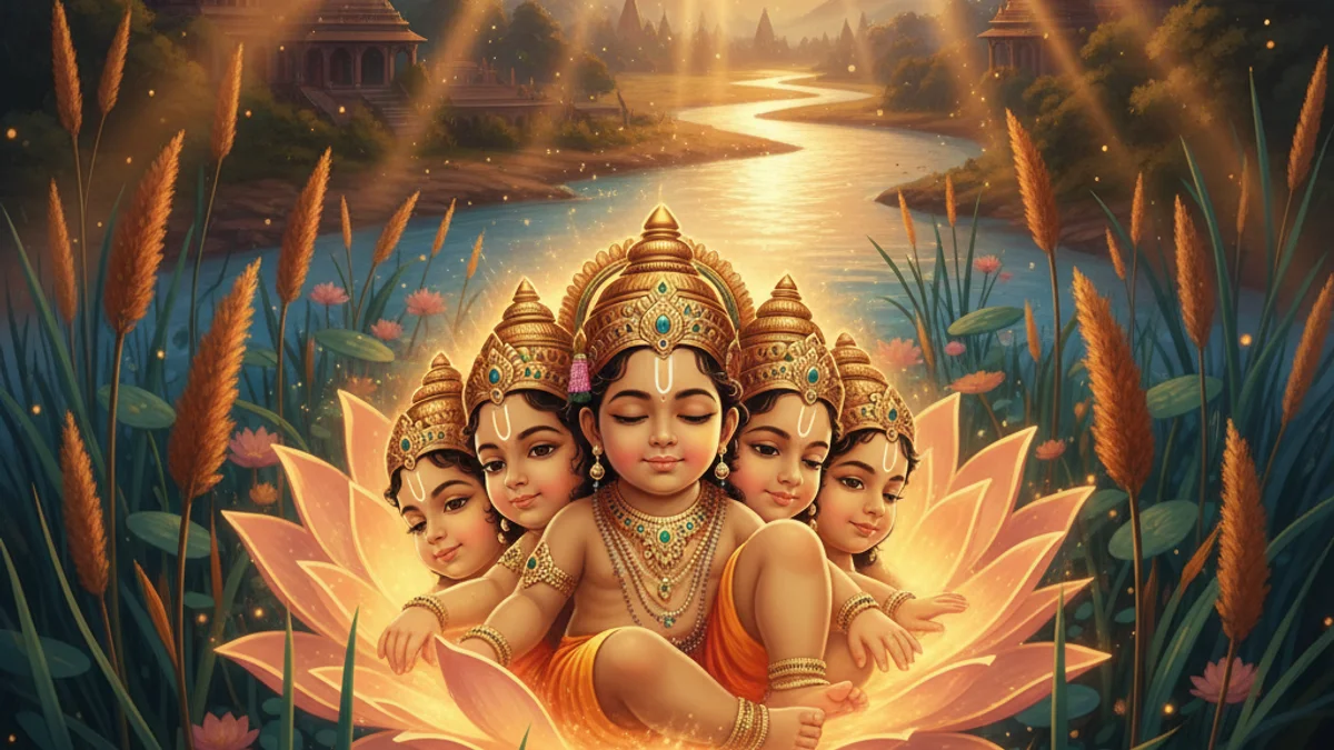 Explore the Birth of Kartikeya, the six-headed warrior god born from Shiva's energy to defeat the invincible demon Tarakasura and save the celestial realms.