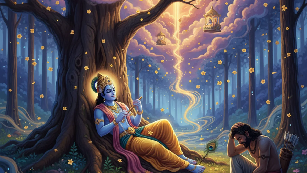 Discover the poignant tale of The Departure of Krishna, marking the end of the Dvapara Yuga and the beginning of the Kali Yuga through destiny and divine grace.