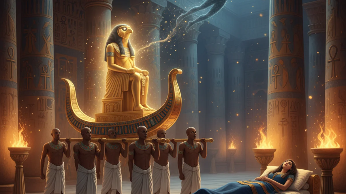 The Prince had a prophetic dream where he saw the god exit his shrine in the form of a golden hawk and fly toward Egypt. He took this as a sign that the god no longer wished to stay in Bakhtan.