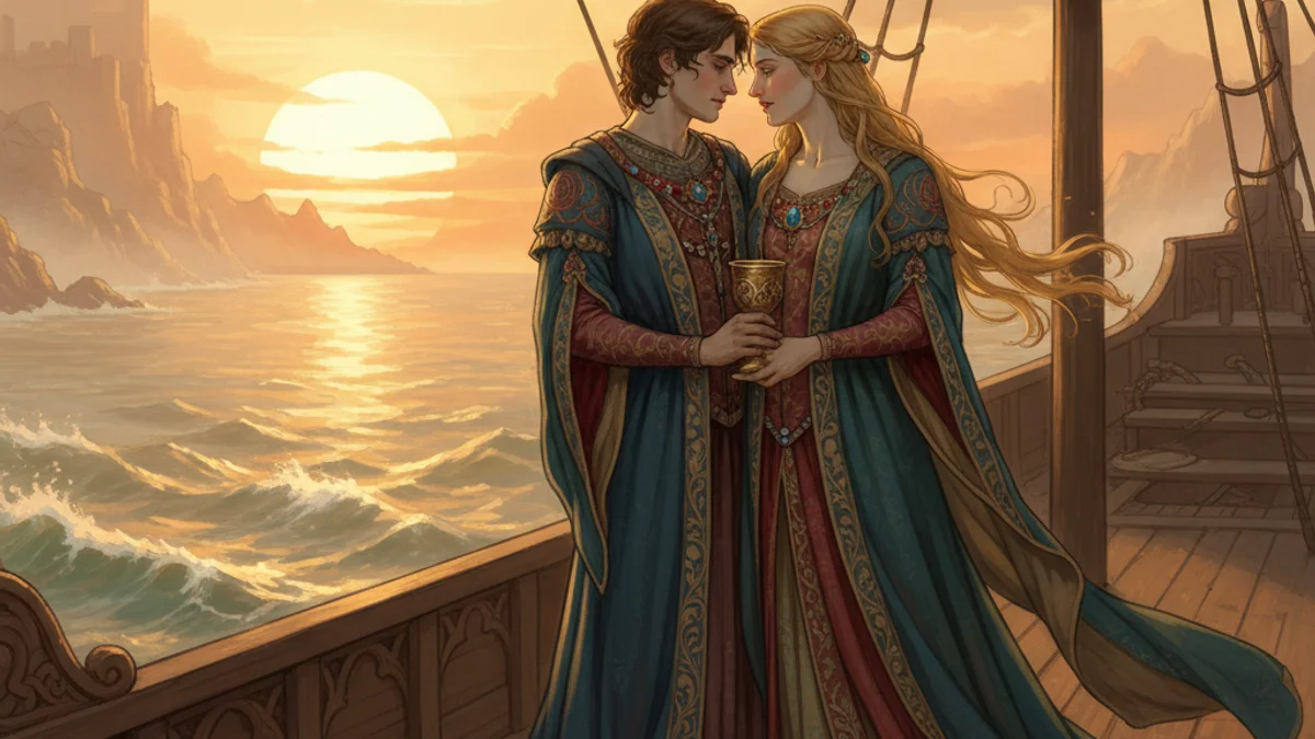 They fell in love after accidentally drinking a magic potion during their voyage from Ireland to Cornwall. The potion was originally intended for Iseult and King Mark to ensure a happy marriage.