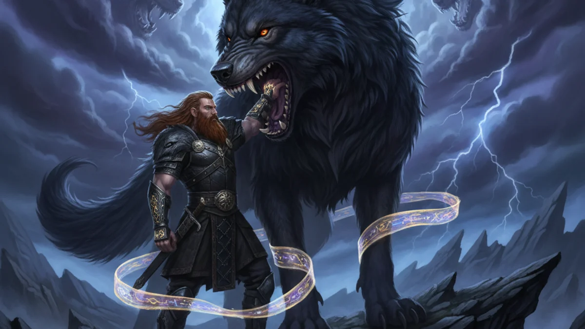 Discover the epic tale of Tyr and the Binding of Fenrir. Witness the god of justice sacrifice his hand to chain the monstrous wolf and prevent Ragnarok.