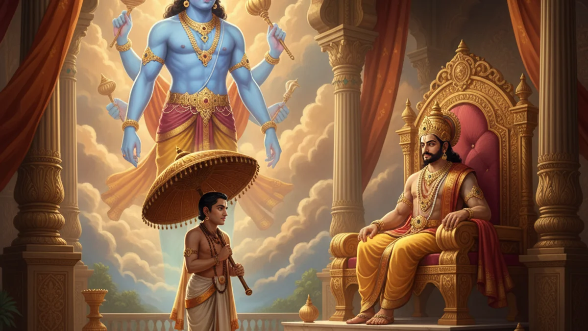 Discover the legend of Vishnu as Vamana, the dwarf avatar who outsmarted King Bali with three steps to restore balance to the universe and the celestial realms.